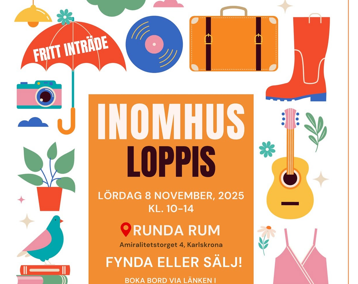Kom och fynda på Runda Rums inomhusloppis lördagen den 8 november kl 10-14. Fritt inträde!