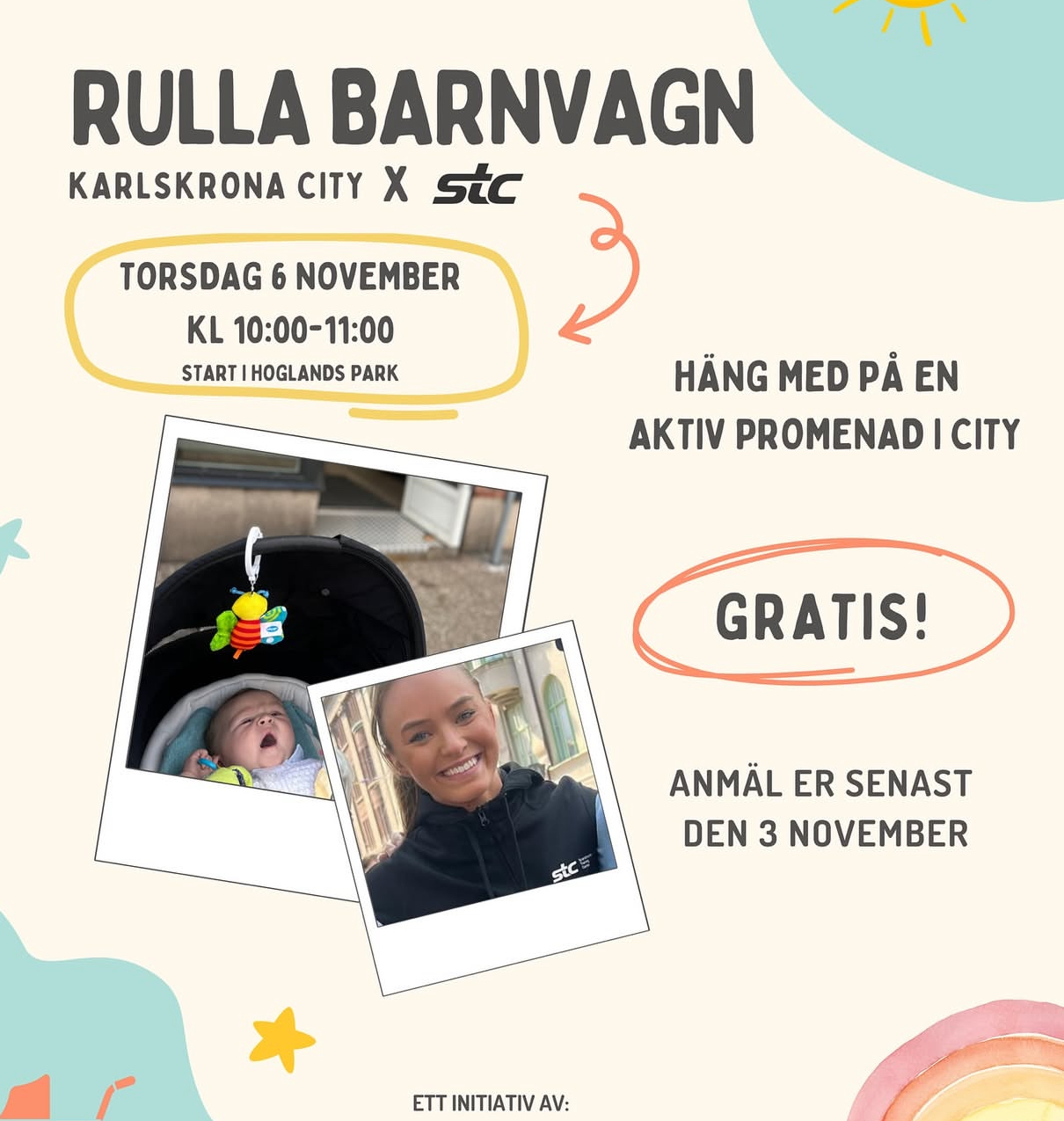 Succén fortsätter 👶 Rulla Barnvagn Karlskrona är tillbaka med en aktiv promenad! Passa på att komma in till stan, träffa andra och promenera med oss. 😍 Perfekt för en fika och shopping efteråt! 🧡 Anmälan sker via länken https://forms.gle/svhunQxwnTW3VSvj9